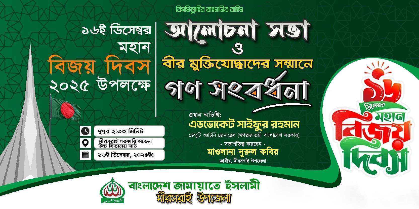 Advocate Saifur Rahman is a principled, honest, and public-spirited political figure committed to the welfare of the people. As the Bangladesh Jamaat-e-Islami–nominated Member of Parliament candidate for Chattogram-1 (Mirsharai), he has been working tirelessly to uphold people’s rights, ensure justice, and promote sustainable development in the constituency.